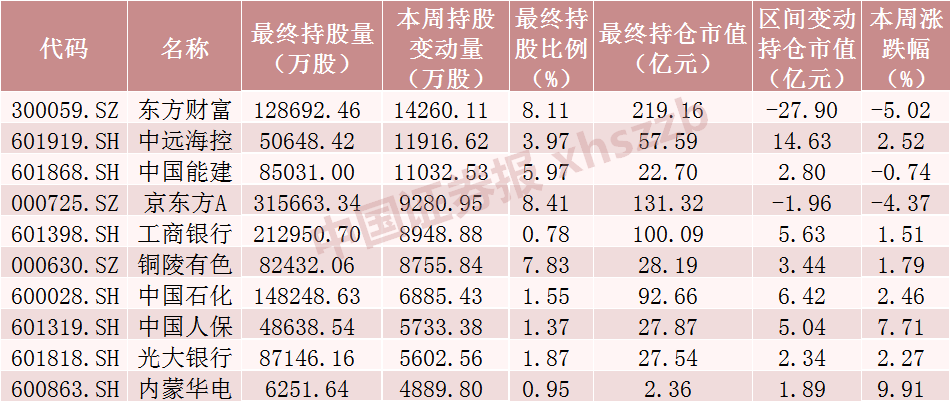 从市场表现看,本周北向资金持股增加数前十的股票涨多跌少。其中,东方财富跌幅最大,本周下跌5.02%;内蒙华电涨幅最大,本周上涨9.91%。