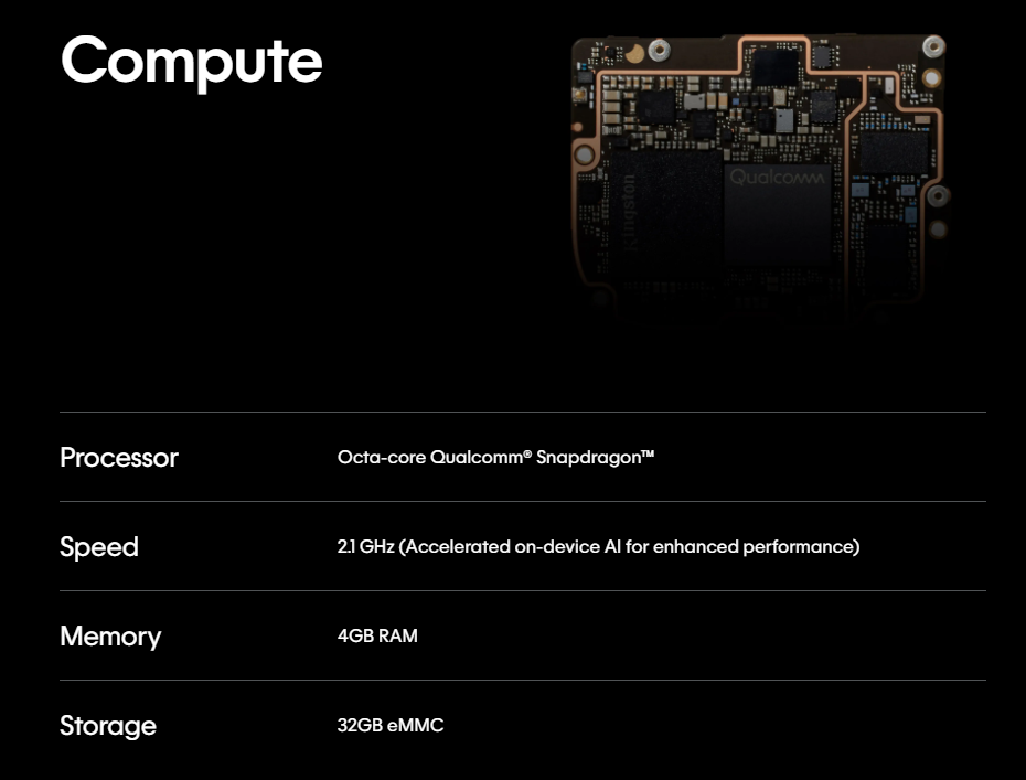 配置方面,官网称AI Pin的处理器为高通骁龙八核处理器,但并未透露进一步的细节,内存4GB,储存空间为32GB,摄像头支持4208x3120像素照片分辨率,目前只有照相功能,未来软件更新后可以拍摄视频。