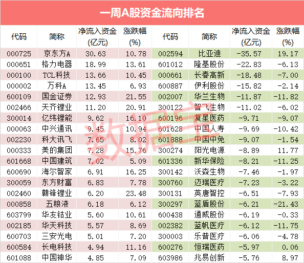 单只股票来看,净流入规模前五位的依次是京东方A、格力电器、TCL科技、万科A、国金证券,京东方A净流入规模30.63亿元居首。京东方A今日逆市上涨2.54%,日线五连阳,本周累计涨幅10.78%。在刚刚过去的三季报中,京东方A 前三季度实现盈利24.76亿元,同比增长33.67%。据京东方A透露,公司成都第 6代柔性AMOLED生产线、绵阳第6代柔性AMOLED生产线正处于量产爬坡中;重庆第6代柔性AMOLED生产线项目按计划建设中,预计2021年投产。