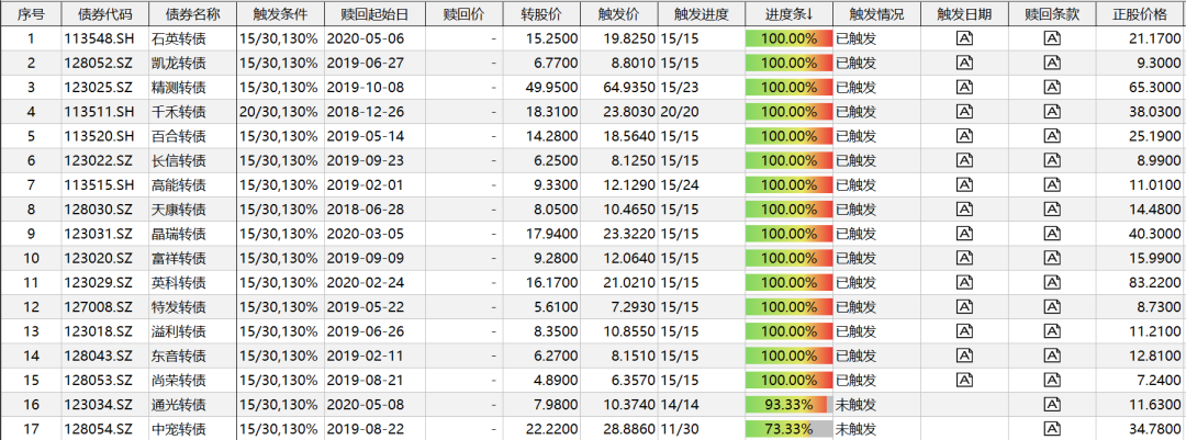 此外,还有多只可转债强赎条款已被触发。由于强赎价几乎接近面值,投资者若不及时操作,将遭受重大亏损。