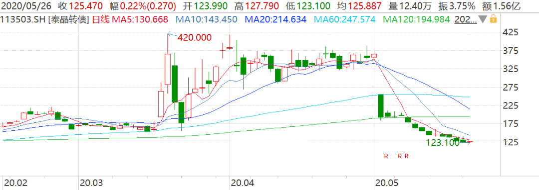 泰晶转债最高涨至420元,在发行人公告强赎前,还在360元以上