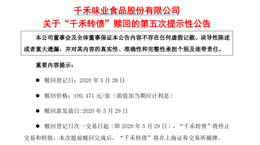 有了泰晶转债和百姓转债的教训,千禾转债的投资者要注意了:28日收市后,千禾转债将停止交易和转股。