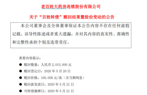 但是,从强赎结果来看,仍有超2万张百姓转债未被转股。截至20日,百姓转债转股价值为130.35元,按此计算,没转股损失30%。