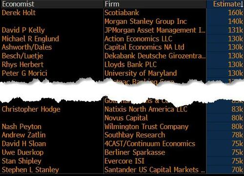 整体来看,华尔街机构对今晚非农的预测分布落在7万-16万人之间。