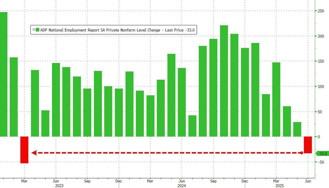 这或许就是眼下全球股债汇市场交易员们纠结心态的真实写照,尤其是在昨夜美国“小非农”ADP数据令人跌破眼镜地意外转负的背景之下!