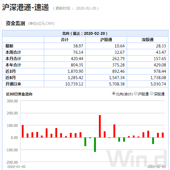 2月20日,北上资金当天净流入38.97亿元,本月已净流入420.44亿元,今年以来累计净流入804.35亿元,场外资金持续涌入。