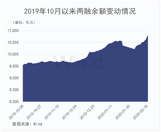 除北上资金外,近期两融资金亦加速流入。截至周三(2月19日),A股融资融券余额为10781.16亿元,较前一交易日的10751.39亿元增加29.77亿元,并创出今年以来新高。