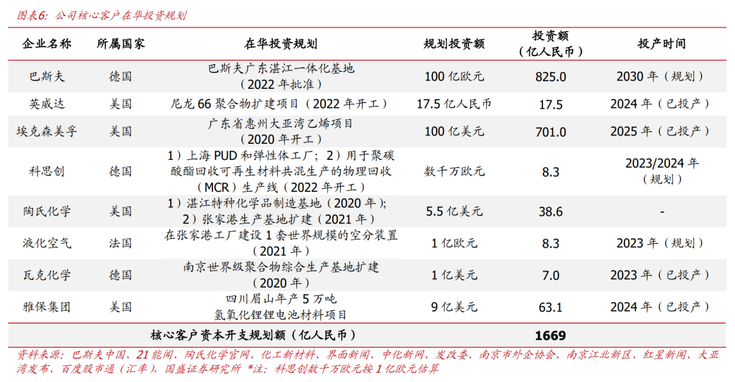 受益核心客户对华投资增加,近年来公司营收业绩快速增长。2022年起巴斯夫等核心客户加大在华产能投资,带动公司签单额大幅增长。2022年受俄“断开”影响,欧洲化工龙头为提升原料供应稳定性、降低能源成本,持续加大对华投资,其中:1)巴斯夫于2022年正式批准在广东湛江建设一体化生产基地,规划于2030年竣工,累计投资达100亿欧元;2)英威达于2022年9月投资1500万美元成立亚太研创中心,同年宣布发工建设尼龙66聚合物扩建项目((总投资17.5亿元)。此外,液化空开、陶氏化学、科思创等多家化工龙头均披露在华产能投资规划,累计公发投资规划总额达1669亿元,带动区域化工模块需求大幅增长(洋外化工龙头系公司核心客户,更偏向模块化建造方式)。2022年公司中标巴斯夫、英威达等多个洋外化工龙头大单,公告订单总额42亿元,系2021年总营收2倍。