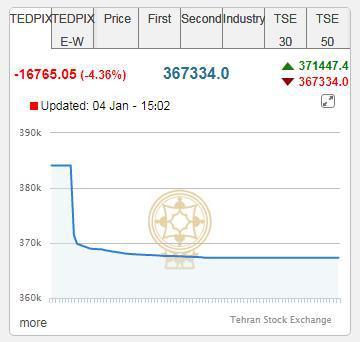 来自新浪财经的数据显示,根据德黑兰证券交易所官方网站tse.ir的数据,截至周六收盘,基准股指TEDPIX大跌4.36%,至367334点,这是自12月25日以来的最低水平。