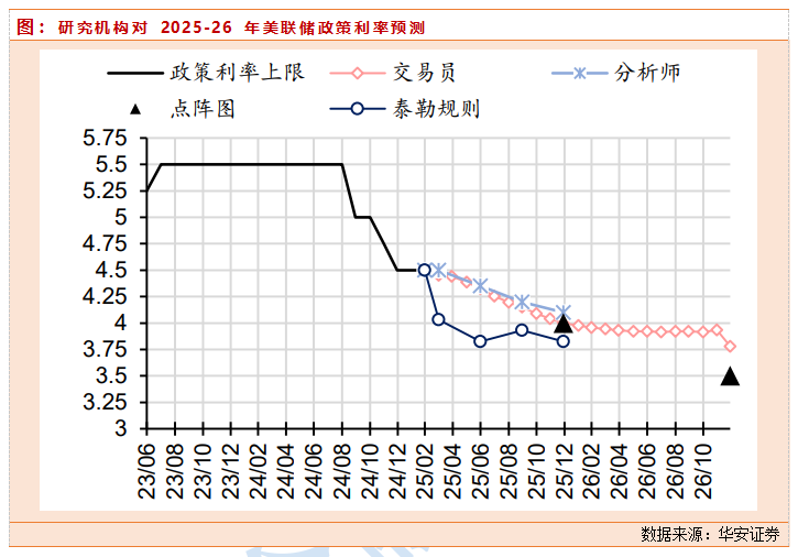 流动性方面,也是扑朔迷离,在2月末的美国宏观数据来看,整体不及预期,2月标普服务业PMI初值49.7,为2023年1月份以来新低,而消费者5年通胀预期3.5%,创1995年4月以来新高。综合来看,除有噪音的1月非农和CPI以外,2月至今公布的美国经济数据整体偏弱,前期美债利率阶段性高企对需求的抑制效应显现,加之特朗普上任对企业乐观情绪的提振效应逐步消退、政策不确定性对消费者信心和通胀预期的影响开始显现,美国经济阶段性承压。预计2-4月美国通胀仍能在基数效应与居住通胀推动下走低,但5月以后特朗普减税、关税、移民政策的通胀效应逐步显现,通胀黏性料再度重现。货币政策方面,分析师大幅延后年内首次降息预期,向前看,我们预计移民、DOGE裁员将对非农就业造成冲击,2-4月通胀在基数影响下趋势性下行,降温预期仍有进一步升温空间,美联储降息仍有可能前置至5月,带动美债利率下行至4.2%附近。但5月以后,上述因素对通胀将反而构成逆风,25H2美联储或更难降息。