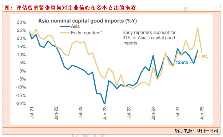 综合来看,《美国优先投资政策》对中美之间在关键领域的直接投资进行了明确双向限制,涉及领域全面、从产业转向系统性遏制,并威胁暂停或取消中美所得税公约所实行的所得税优惠政策,中美技术脱钩进一步加速。短期看,这一政策将直接冲击中国科技股的风险情绪;中期看,关注美国外国投资委员会(CFIUS)后续可能出台的对华具体措施,以及中美关税谈判是否针对这一政策进行博弈及后续可能出现的关税升级风险。关税方面,我们已经看到对中国的关税提高了10%,以及对钢铁和铝征收25%的关税。在贸易紧张局势仍在加剧的背景下,相关的不确定性 可能会拖累企业信心,并拖累该地区的资本支出。