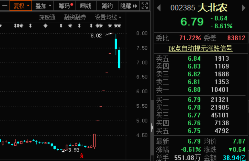 大北农自去年底以来,连续7个涨停,是期间最牛的个股之一,短短7个交易日股价几近翻倍。北上资金去年底约持有大北农4177万股,持股市值1.89亿元,大北农的暴涨令北上资金赚得盆满钵满。
