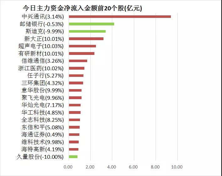 沪深300今日主力资金净流出45.55亿元,创业板净流出22.19亿元,中小板净流出40.19亿元。沪股通净流入45.69亿元,深股通净流入33.15亿元(本文中沪股通、深股通净流入额以当日已用额度来计,与成交净买入额略有差异,但表示的意义大体一致)。