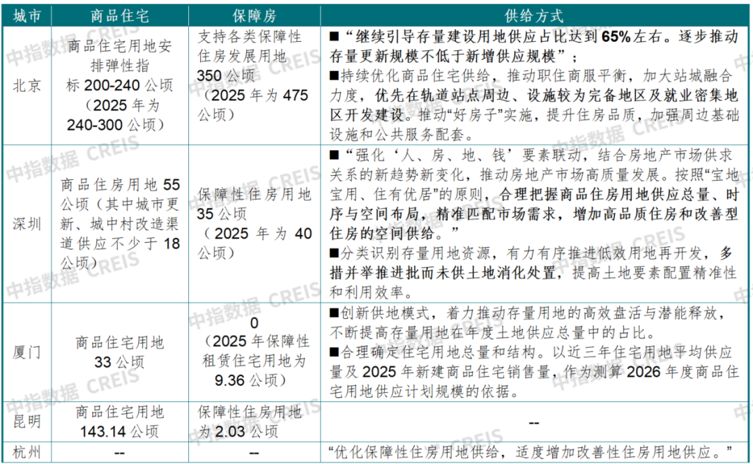 表:2026年重点城市住宅用地供应计划