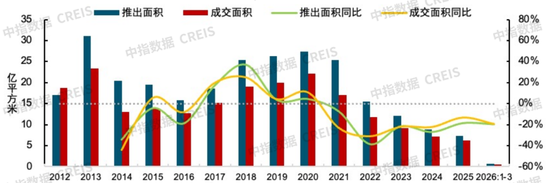 与核心城市“点状高热”不同,全国土地市场整体延续平淡缩量态势。根据中指数据,截至3月22日,300城住宅用地推出、成交规模同比均下降。近期部分重点城市披露的2026年供地计划显示,各地政府普遍调降了年度居住用地供应规模,并将供地重心向轨道站点周边、配套成熟区域集中,优先保障高品质、改善型住房用地需求。