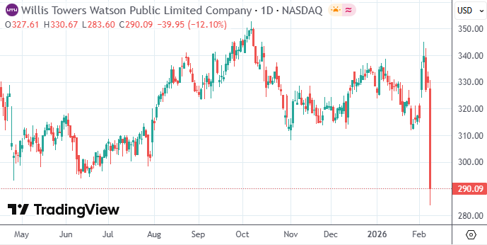 周一(2月9日),美股多家保险经纪公司股价重挫,标普500保险指数收跌3.89%,创去年10月以来的最大单日跌幅。