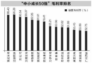 从盈利能力来看,“中小成长50强”超七成公司销售毛利率高于A股整体水平。17家公司去年销售毛利率在50%以上,最高的是我武生物,公司销售毛利率高达96.43%,排在A股第三位的水平。