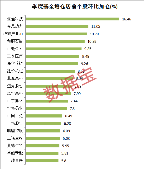 数据宝统计显示,在披露的公募基金持仓中,29股获大手笔加仓,二季末持股比例环比增加5%以上,科创板股有5只,包括道通科技、卓越新能、中微公司等。