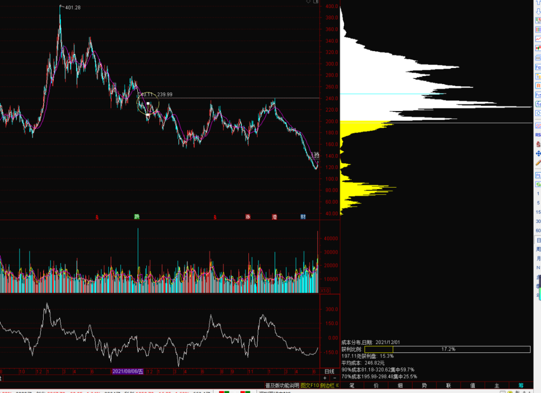 白色是套牢筹码——目前收盘价有多少筹码被套;
