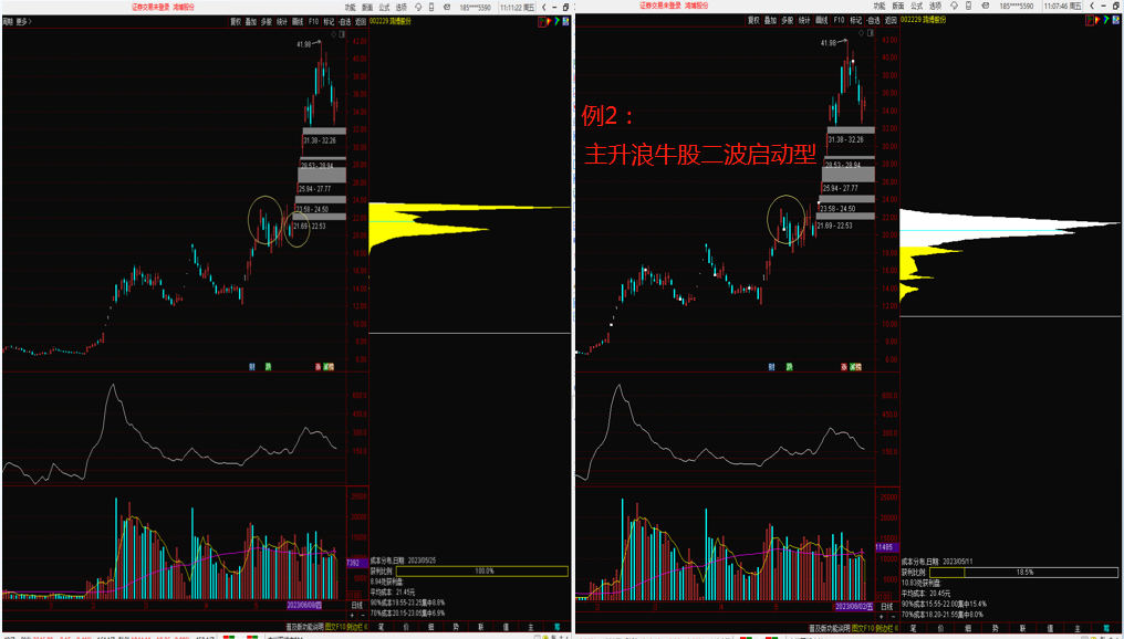 主升浪第一波拉升后,经过震荡调整形成新的单峰密集,如果价格突破筹码峰,有望走出2波主升。