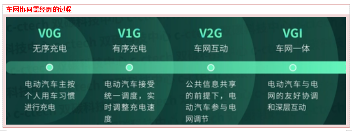 本次意见提及的车网协同可理解为V2G(Vehicle-to-Grid)模式,一般指的是在公共信息共享的前提下,电动汽车参与电网调节的机制。业内专家指出,从电动汽车的发展过程来看,其与电网的互动需要先后经历V0G、V1G、V2G和VGI四个过程。