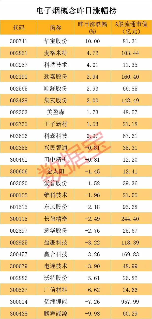 新型烟草概念空间巨大,同时具备牌照概念,有投资者认为这一概念有望比肩近期火爆的免税概念。部分概念股也大幅飙升,华宝股份7月以来涨超90%,劲嘉股份、集友股份、科瑞技术等个股也纷纷大涨。