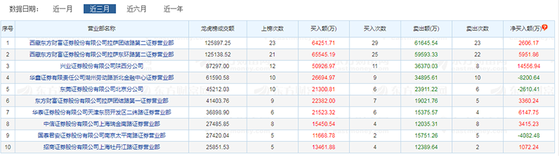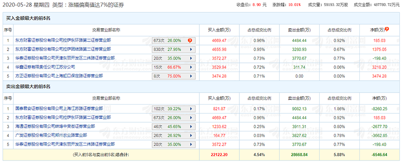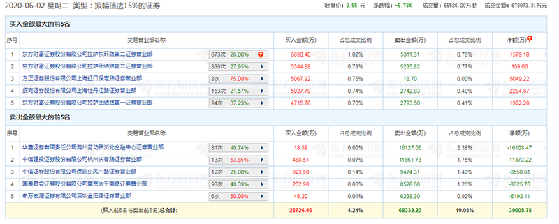 6月2日的最新龙虎榜单中显示,“散户大本营”东方财富证券拉萨东环路、拉萨团结路成为最“积极”的接盘者,占据买一、买二席位,分别买入6890.40万元、5344.88万元。