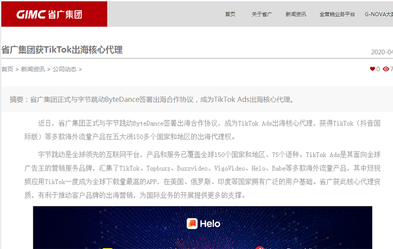 这个消息出现在省广集团的官网上,但未在交易所公告此事。公司4月22日在回复深交所问询函时表示,公司与字节跳动是长期业务合作伙伴关系,近期与其签署的出海合作协议为日常经营业务正常开展所涉协议,不涉及具体金额,不属于重大合同,未达到信披标准。