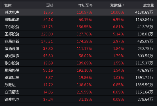 而值得注意的是,TWS耳机作为智能手机产业链的一个核心环节,今年以来也大受资金欢迎,尤其是共达电声这类有重组概念的相关公司,更是涨幅居前。