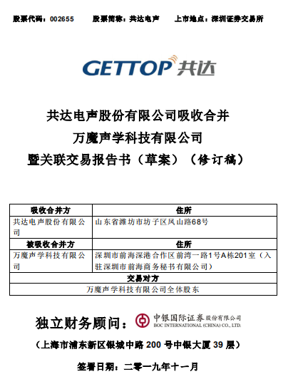 直到2018年11月,共达电声正式宣布将吸收合并万魔声学100%股权,将其资产装入上市公司本体。