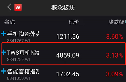 而被这场大收购带动,TWS耳机指数也成为当日A股市场“涨”声一片的板块。当天上午,TWS耳机指数高开高走,盘中指数大涨超3%。而板块内全线飘红,多只概念股涨幅超5%以上。