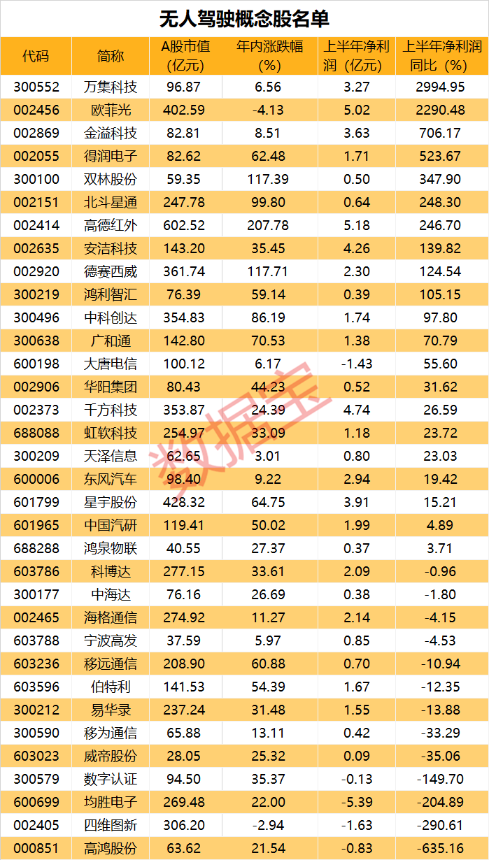 无人驾驶利好消息频出 多只业绩翻倍股出炉