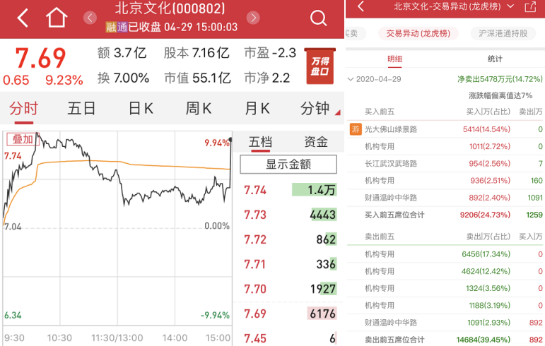 诡异的是,北京文化29日大涨9.23%,然而机构资金却疯狂出逃。龙虎榜数据显示,卖出前五席中,4家为机构专用席位,合计卖出1.36亿元。