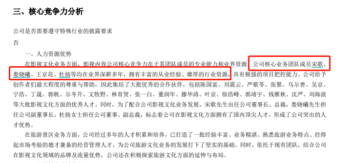 在此之外,娄晓曦本人在电视剧网剧方面也是绝对的业内大佬。此前,娄晓曦曾是华谊兄弟的影视剧负责人,与王中军关系密切。而在北京文化内部,娄晓曦也是核心业务团队成员之一。北京文化近年年报中,“人力资源优势”均处于核心竞争力的首位,“公司核心业务团队成员宋歌、娄晓曦、王京花、杜扬等均在业界深耕多年,拥有丰富的从业经验、雄厚的行业资源”。