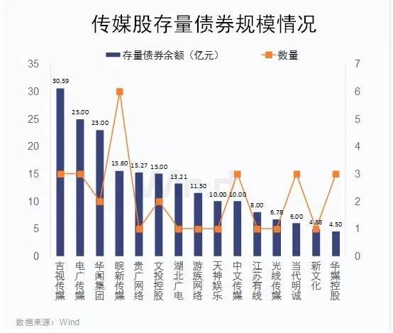 最后从债券兑付角度来看,Wind数据显示,传媒股整体存量债券并不多,目前共有25家有存量债券,合计余额为214.68亿元。其主要集中在吉视传媒、电广传媒等10家,每家存量债券余额都在10亿元以上。除了天神娱乐三季报业绩出现亏损外,其余经营都还不错。虽然后期不一定会出现兑付风险,但存量债券较多,规模较大的上市公司仍需谨慎。