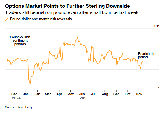 期权市场的定价也印证了这一观点:交易员押注英镑在未来一个月乃至一年内将继续下跌。