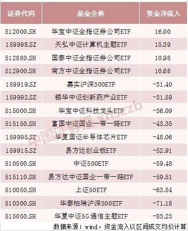 科技类ETF中,华夏中证5G通信主题ETF大幅净流出83.23亿元,华夏国证半导体芯片ETF、华宝中证科技龙头ETF分别净流出48.06亿元、36.09亿元,不过,天弘中证计算机主题ETF净流入15.39亿元。此外,三大券商类ETF华宝中证全指证券公司ETF、国泰中证全指证券公司ETF、南方中证全指证券公司ETF净流入均超10亿元。