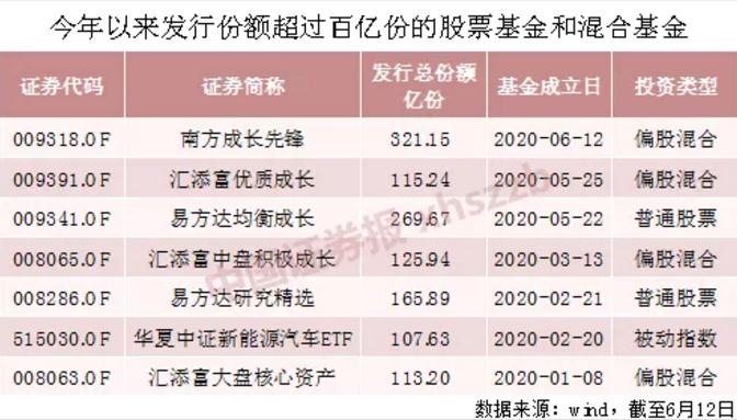 从公募基金发行看,4月以来公募股票基金和混合基金的发行份额合计高达2377.89亿份,今年以来股票基金、混合基金发行份额合计超6000亿份,并催生了6只发行份额超百亿份的大基金。