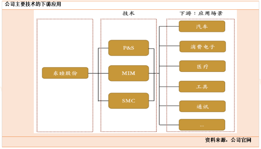 公司以软磁复合材料(SMC)、金属注射成形(MIM)、粉末冶金技术(P&S)三大技术为基础。其中,P&S技术可以提高材料利用率,降低生产能耗,不排放有毒物质对环境友好的同时,使生产的产品尺寸具备一定的精确性;MIM技术突破了传统粉末冶金工艺在形状上的限制,能够大批且高效的成形拥有复杂形状的零件,是近年来粉末冶金领域发展最为迅猛的高新技术之一;SMC技术具备减小功耗、节省材料、简化装置等优点。