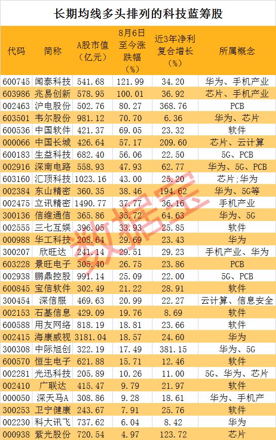 芯片+5G等科技股中的大白马名单 机构抱团入驻