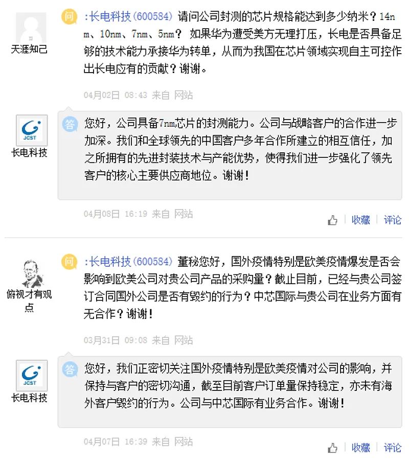 长电科技则将继续受益于华为手机芯片的封装业务订单。长电科技近日在互动易披露,公司具备7nm芯片封测能力,与战略客户的合作进一步加深;截至4月7日,公司客户订单量保持稳定,海外客户也没有毁约行为。