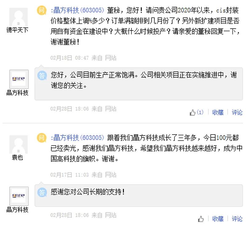 晶方科技2月底在互动易披露,公司生产正常饱满。公司的相关项目正在实施推进中。晶方科技是CMOS图像传感器(CIS摄像头芯片)封装的领先者。