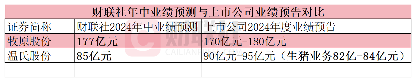 出栏量增长的同时,受益于猪价回升与养殖成本下降,2024年成为上市猪企盈利年。从牧原股份和温氏股份等已披露的业绩预告来看,其2024年实现净利润与去年年中财联社报道的估算预期也基本相符。