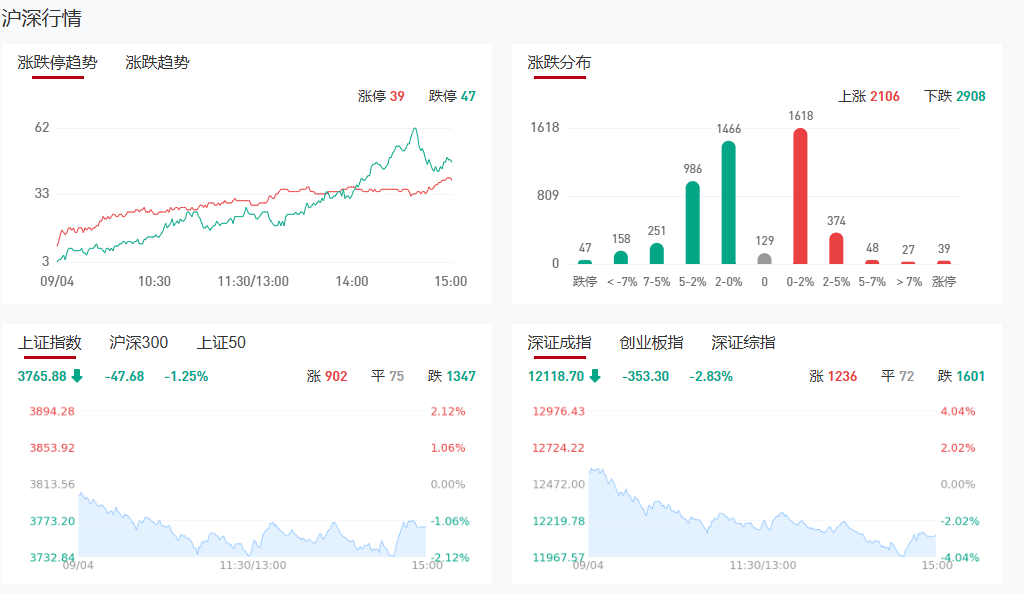 板块方面,零售、食品、造纸、光伏等板块涨幅居前,CPO、半导体、元件、军工等板块跌幅居前。截至收盘,沪指跌1.25%,深成指跌2.83%,创业板指跌4.25%。