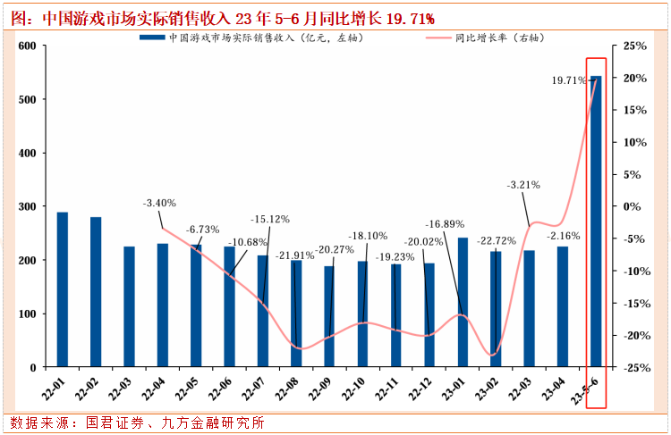 游戏行业景气度触底反弹,5-6月手游行业收入同比增长26%、环比增长31%。随着版号持续稳步发放,国内游戏市场供给逐渐丰富,各类精彩作品不断涌现,产业趋势稳步上升。
