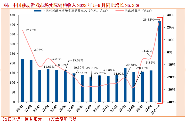 手游市场2023H1市场回暖势头强劲,5-6月同比增长26.32%。
