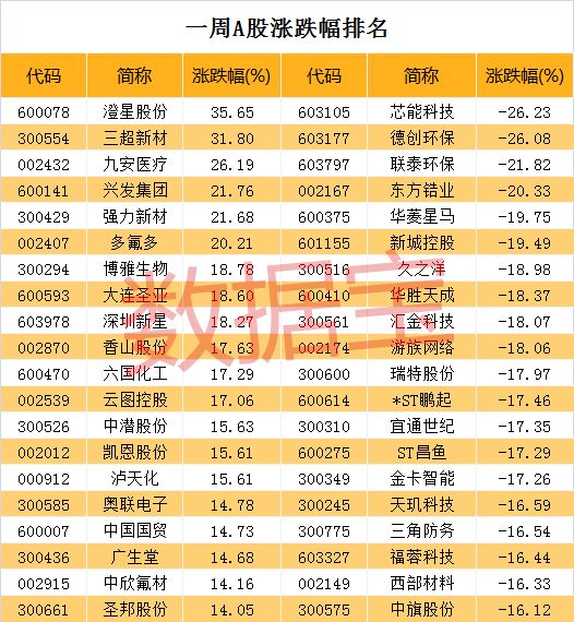 本周共计3060股累计下跌,其中4股累计跌幅超过20%,分别是芯能科技、德创环保、联泰环保、东方锆业。芯能科技累计跌幅26.23%居首,该股上市时间刚满一年,最新收盘价创首发上市开板以来新低。上市当年,芯能科技净利润同比下滑43.15%,今年一季度盈利不足百万,同比下滑96.68%。因垃圾分类题材大热的德创环保、联泰环保本周遭遇重创,累计跌幅分别为26.08%、21.82%。累计跌幅较大的还有华菱星马、新城控股、华胜天成、汇金科技、游族网络等。
