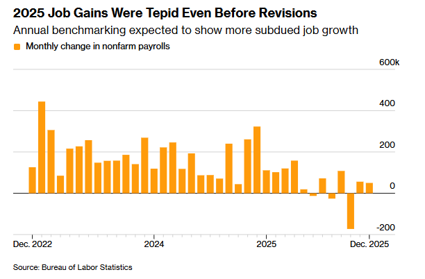 值得一提的是,美国劳工统计局通常会在1月就业报告中将新人口估算值纳入家庭调查数据,但因去年创纪录时长的政府停摆,该流程被延迟了一个月。