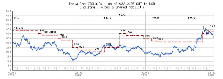 但是在华尔街知名投资机构Wedbush Securities看来,随着特朗普政府对于未来L3、L4级别自动驾驶,以及基于完全无人操控的FSD审核与正式批准进度,可能相比于拜登政府时期大幅提前,Wedbush资深分析师丹·艾夫斯领导的团队对于2025年及以后的需求交付“叙事逻辑”越来越有信心。550美元乃Wedbush对于特斯拉的基本看涨目标,意味着在该机构看来特斯拉未来12个月大幅上涨至突破550美元基准预期乃大概率事件,Wedbush对于特斯拉的“牛市目标股价”,即对于特斯拉的最乐观预期股价则被上调至650美元。