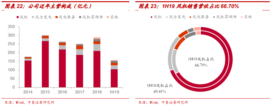 金风科技金风科技是国内最早进入风力发电设备制造领域的企业之一,经过发展已成长为国内领军和全球领先的风电整体解决方案提供商。公司拥有风机制造、风电服务、风电场投资与开发三大主要业务以及水务等其他业务,其中风力发电机组营收占比最大,是公司业务中最重要的部分。除此以外,凭借制造风机及建设风电场的经验,公司还提供风电服务、进行风电场开发。